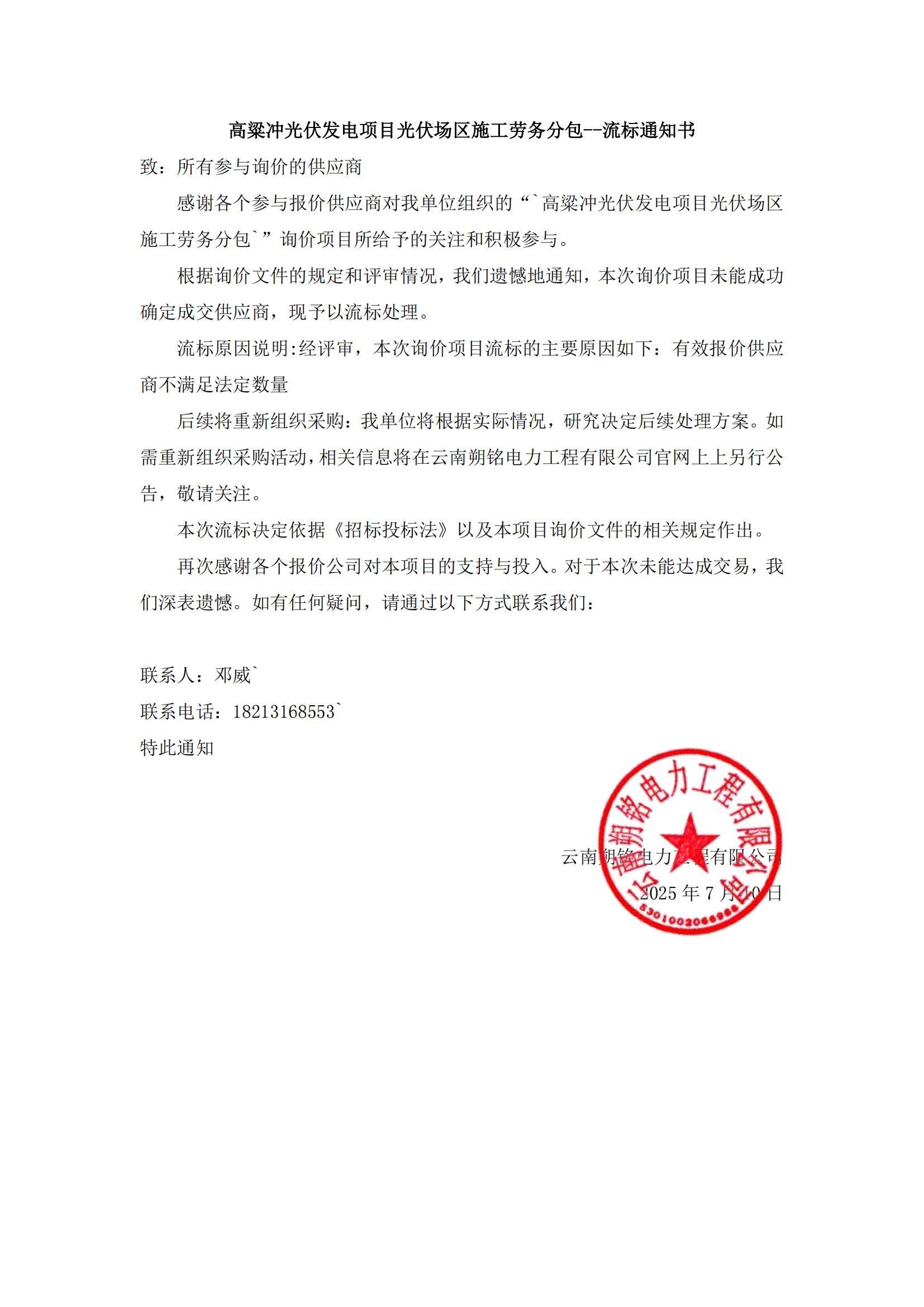 下一篇:高粱沖光伏發(fā)電項(xiàng)目商品混凝土、鋼筋采購(gòu)項(xiàng)目—流標(biāo)通知書(shū)